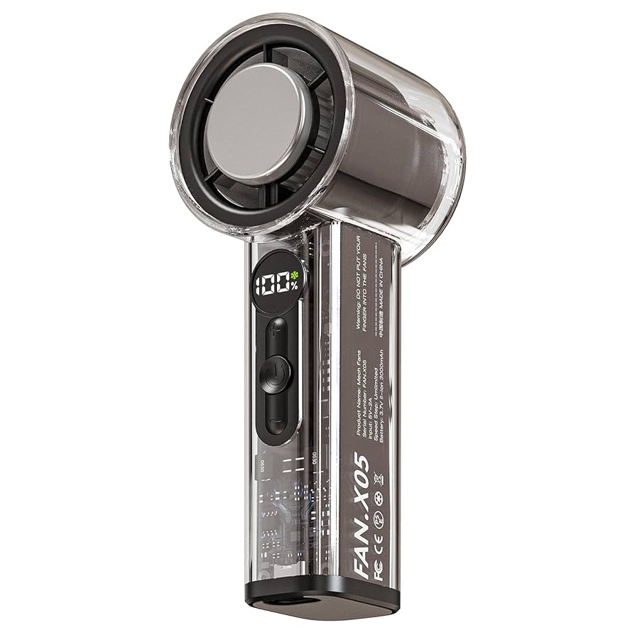 Fan X 05 High Speed Cooling Fan, Transparent Shell Design, Digital Display, Portable Handheld – Black