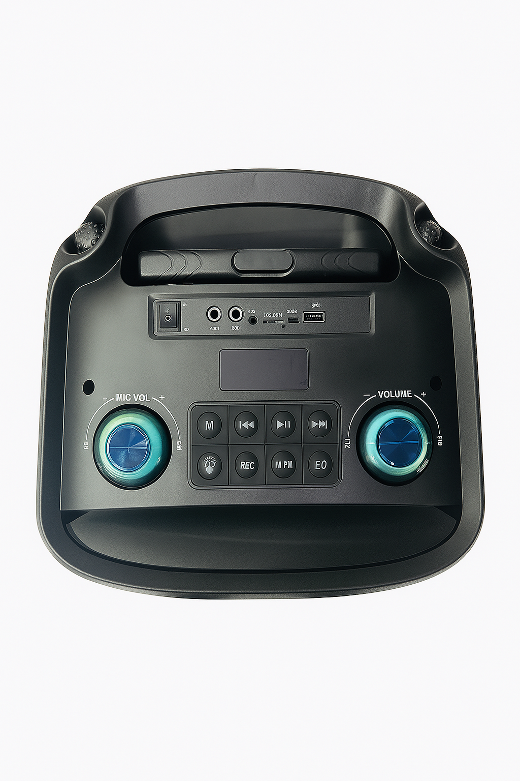 Jbk 12101 Portable Bluetooth Speaker With 2 Wireless Mic / 3000 mah Battery Capacity / Memory Card / Aux / USB / Volume Controller / Mic Volume Controller / Carry Handle / Carry Wheels / Led Light – Black