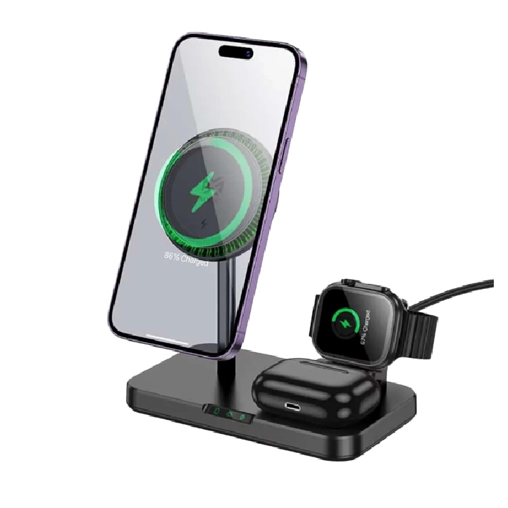 - Wireless Charging Power: The MYX 3-IN-1 MAGNETIC WIRELESS FAST CHARGER 15W MY12 supports fast wireless charging up to 15W, ensuring your devices charge quickly and efficiently. It offers the fastest possible wireless charging speeds for your iPhone, AirPods, and Apple Watch, allowing you to power up all three devices in one place with ease.