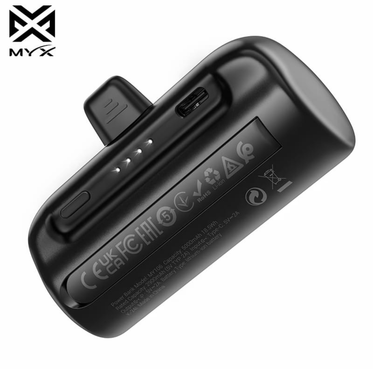 - Compact and Portable Design: The MYX POCKET POWER BANK 5K is designed to be small and portable, making it easy to carry in your pocket or bag. Its compact size is perfect for travelers and busy individuals who need a portable charging solution without taking up too much space.