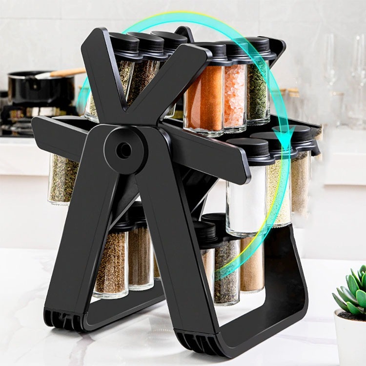 Home » Rotating Spice Rack Organizer with 18 Glass Spice Jars, Revolving Spice Rack Set, 360° Degree Rotating Ferris Wheel Spice Rack, Removable Spice Rack – Black