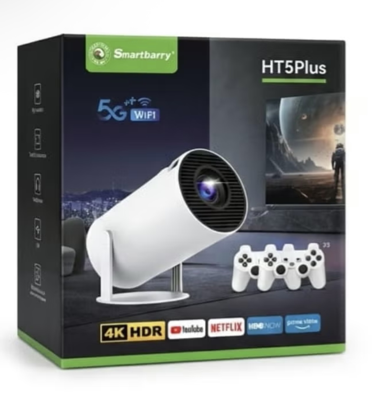 Home   »   Smartbarry HT5 Plus Smart Android Projector – 4K UHD Support, 5G Dual-Band WiFi & Bluetooth, Built-in Games with 2 Wireless Gamepads, Netflix, YouTube, Google Play, HDMI, USB, TF Card – Projector