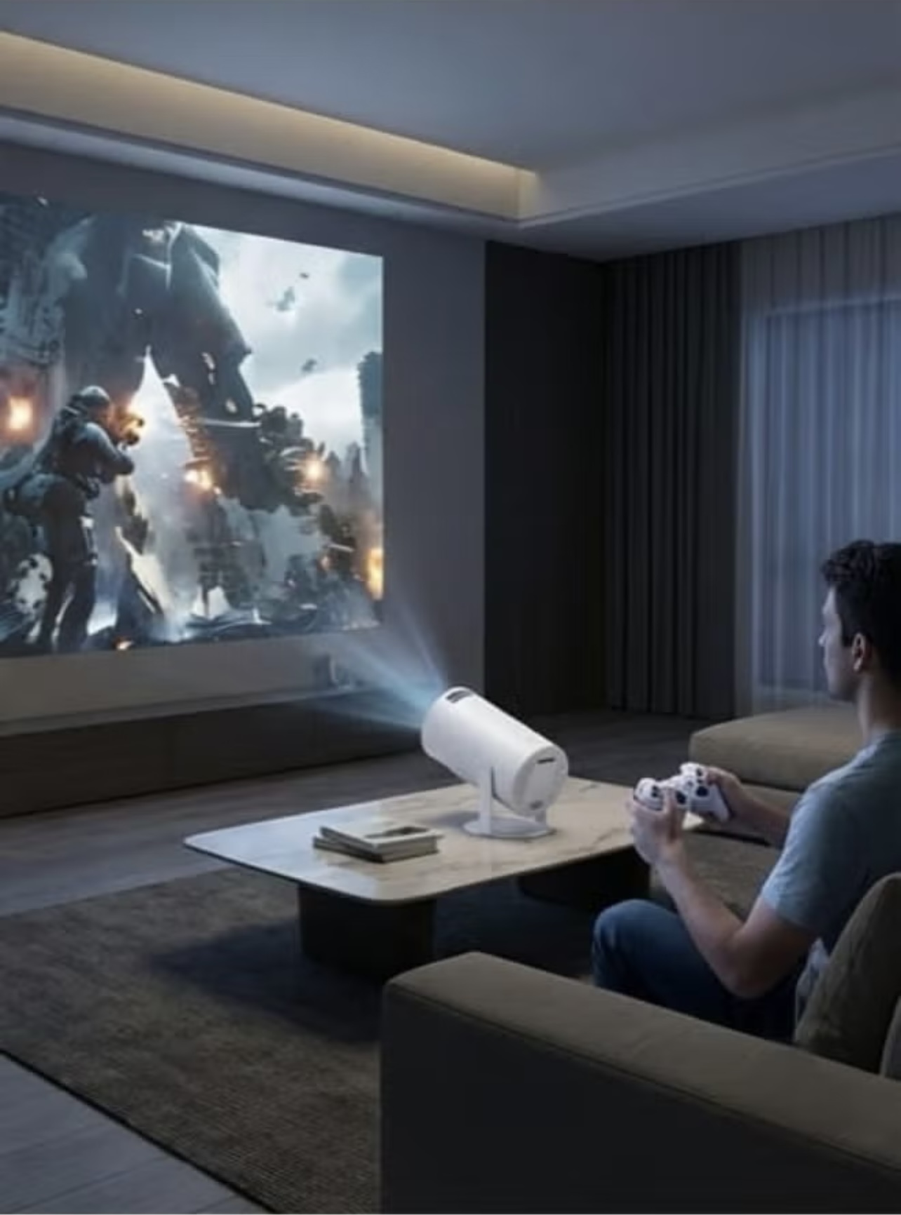 Smartbarry HT5 Plus Smart Android Projector – 4K UHD Support, 5G Dual-Band WiFi & Bluetooth, Built-in Games with 2 Wireless Gamepads, Netflix, YouTube, Google Play, HDMI, USB, TF Card – Projector